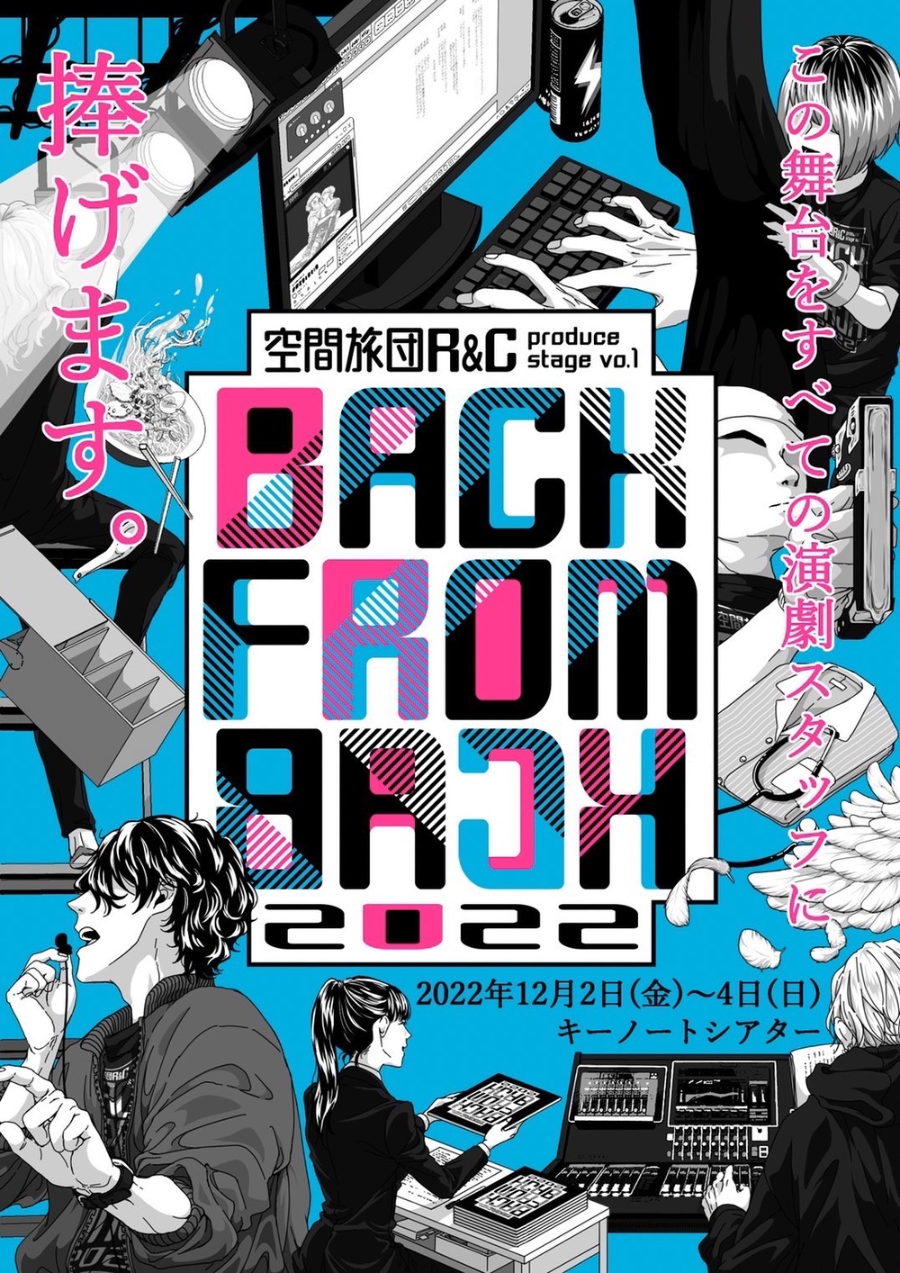 「この舞台をすべての演劇スタッフに捧げます」