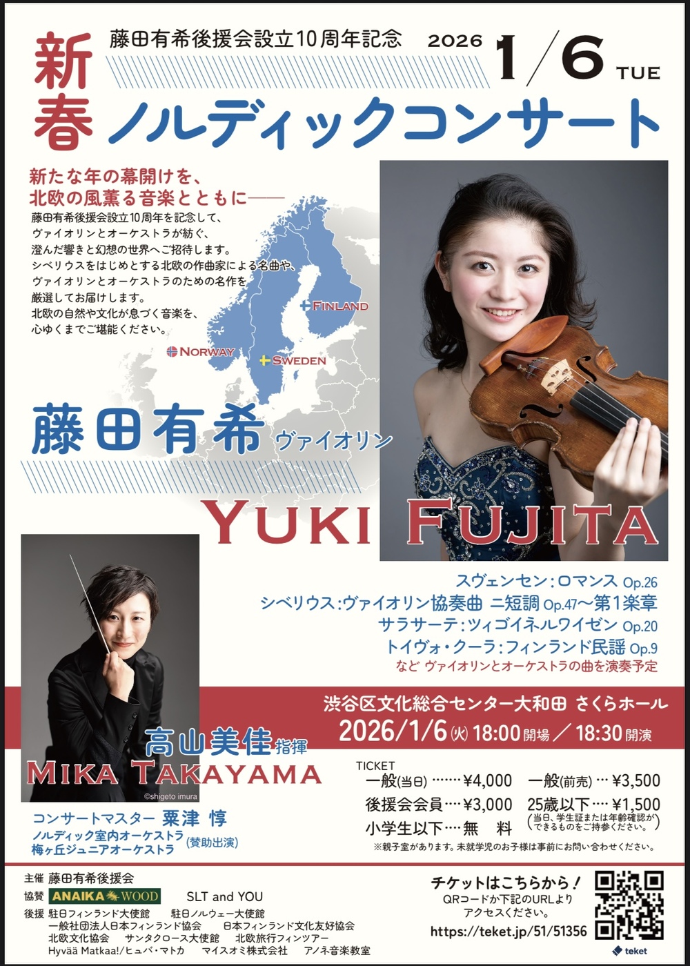 本公演では、フィンランドのシベリウスアカデミーを首席で卒業後、フィンランドの森と湖に囲まれながらヴァイオリンの演奏をしている藤田有希を迎え、なかなか日本では取り上げられることの少ないヴァイオリンとオーケストラの作品を取り上げます。