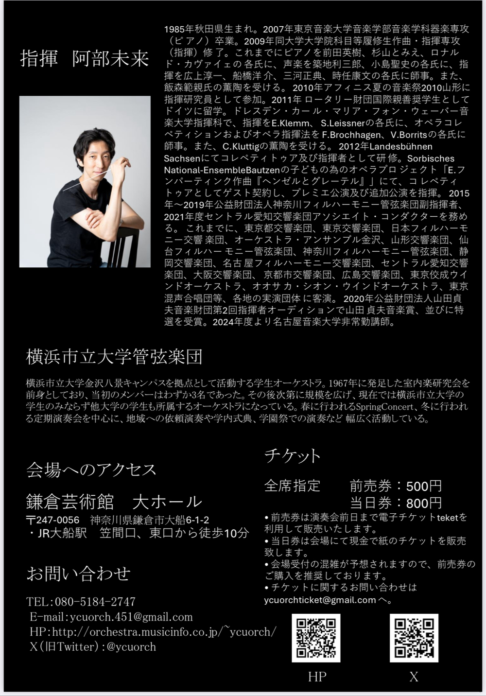 その他のお問い合わせ先:横浜市立大学管弦楽団チケット係