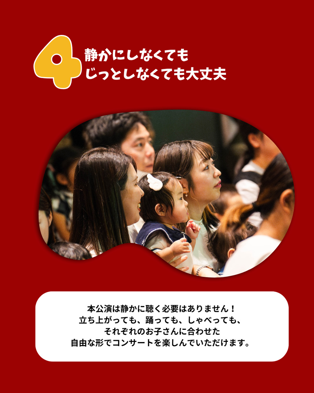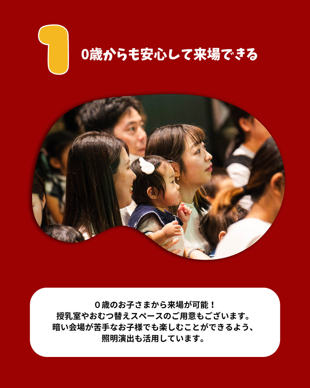 本公演は0歳から来場可能なイベントになっています。オムツ替えスペース・授乳室をご用意しております。