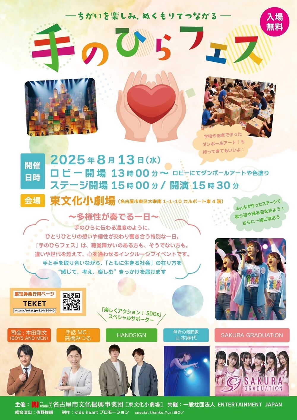 「手のひらフェス」は、障がいのある方も、そうでない方も。日本に暮らすすべての人が、ちがいを超えて、心を通わせるインクルーシブイベントです。