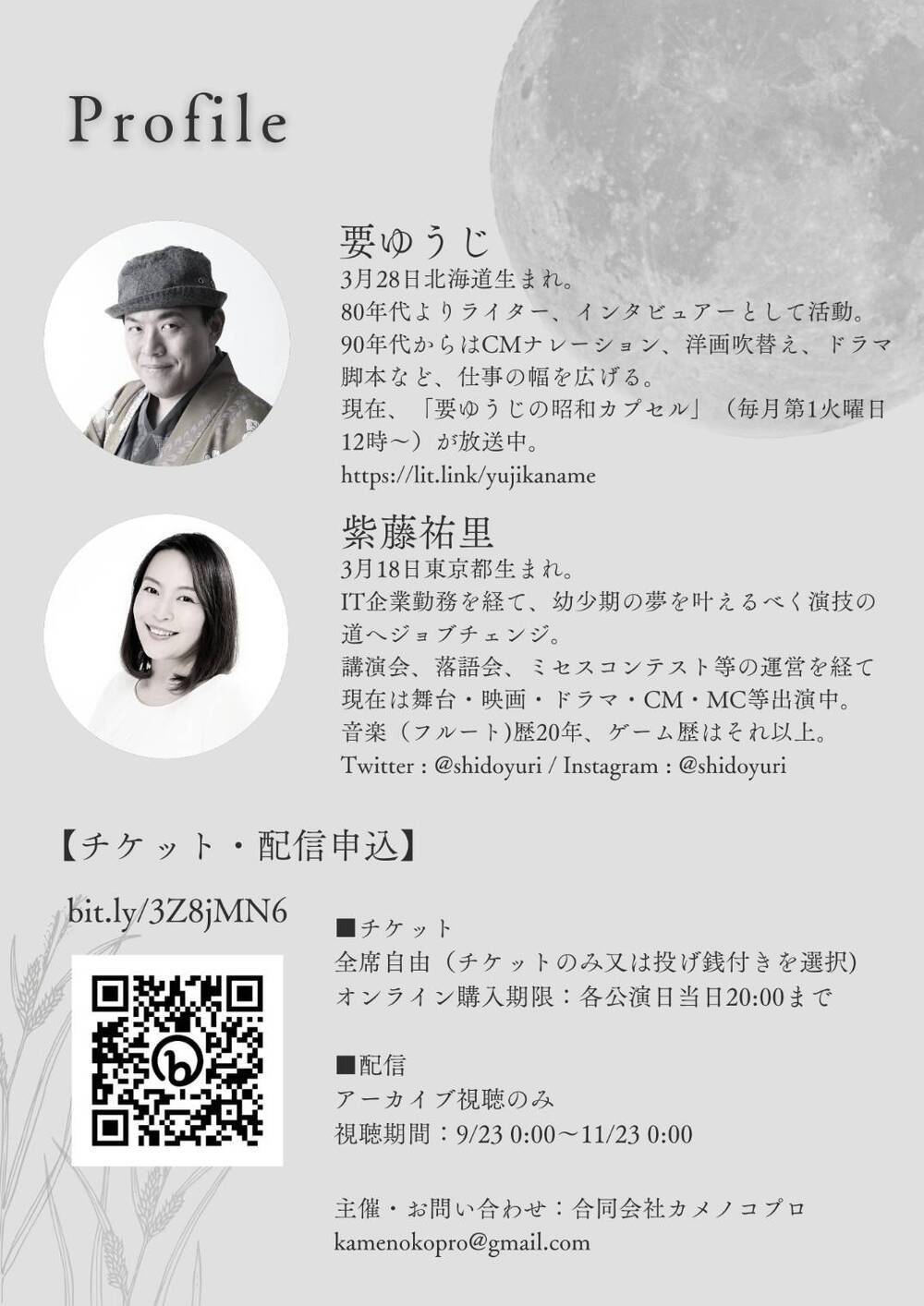 その他のお問い合わせ先:kamenokopro@gmail.com