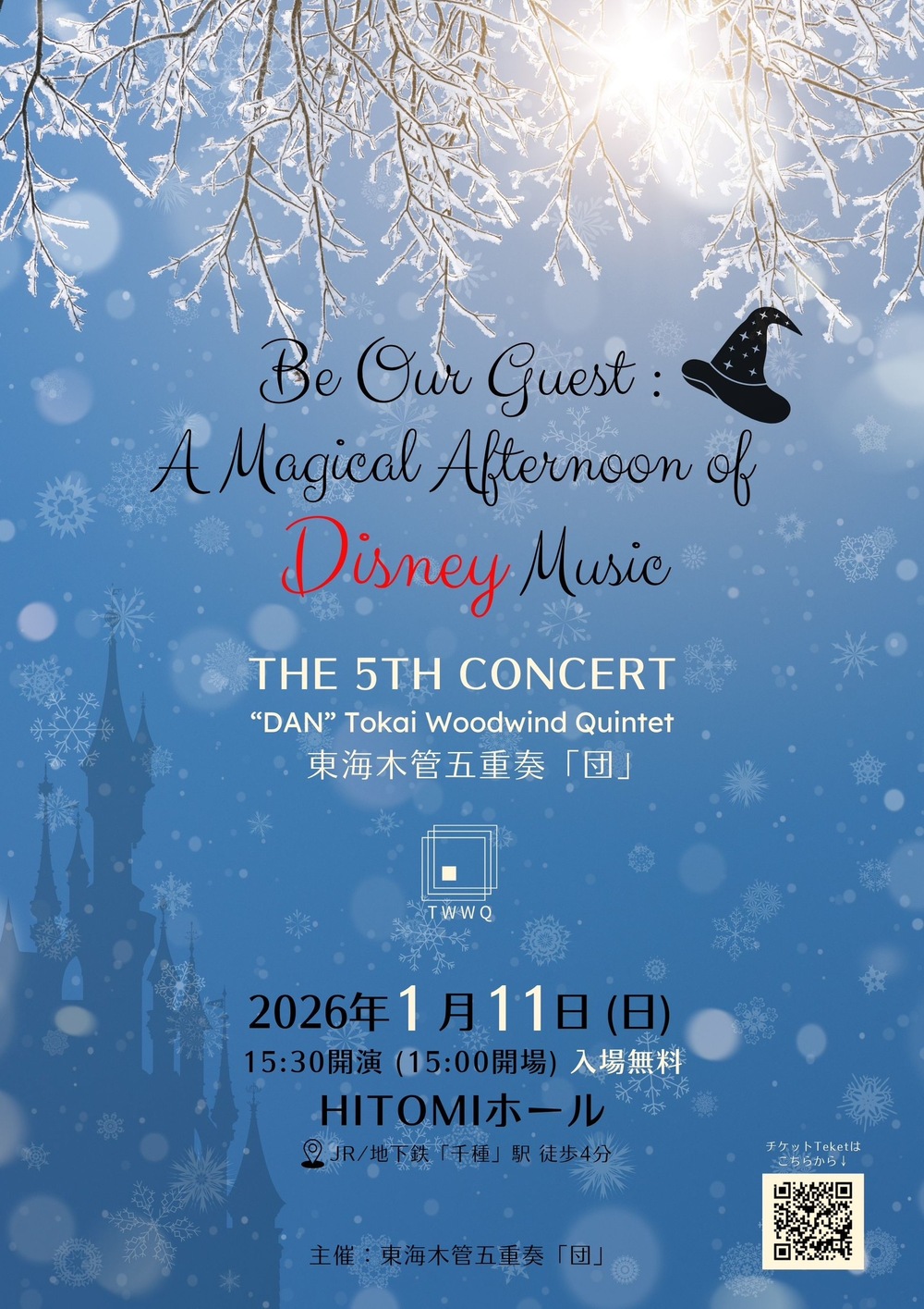 木管五重奏が贈る、ディズニーの名曲による“魔法の午後”をお届けします!