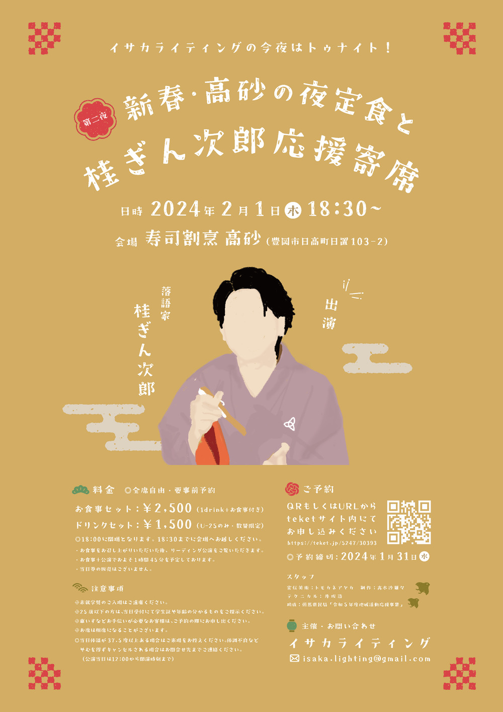 第二夜「高砂の夜定食と、桂ぎん次郎応援寄席」