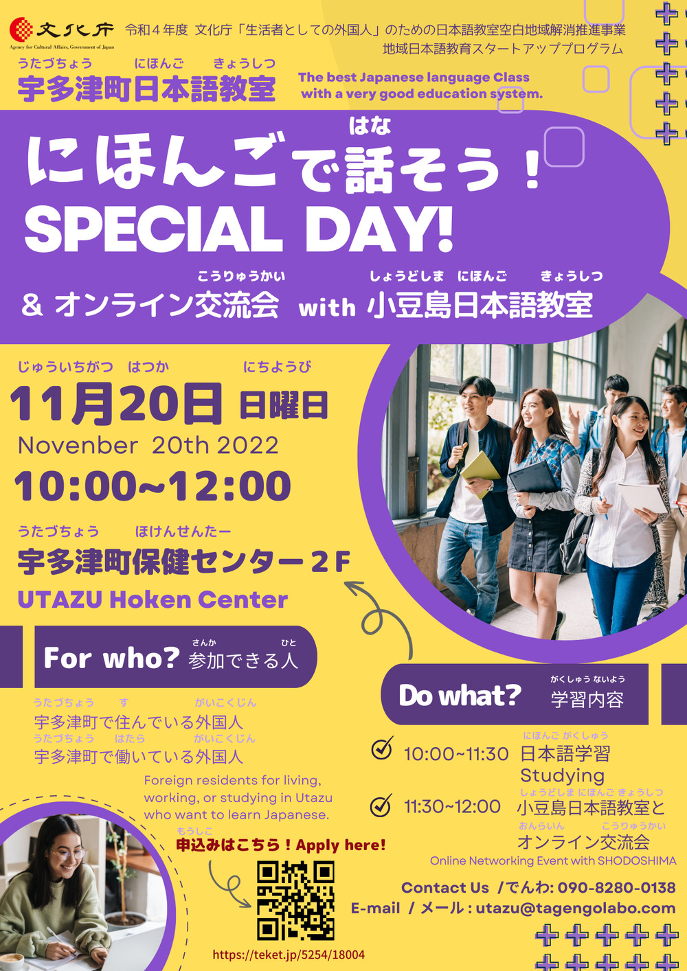 11:30~12:00 小豆島日本語教室(しょうどしま にほんごきょうしつ)とオンライン(おんらいん)交流会(こうりゅうかい)