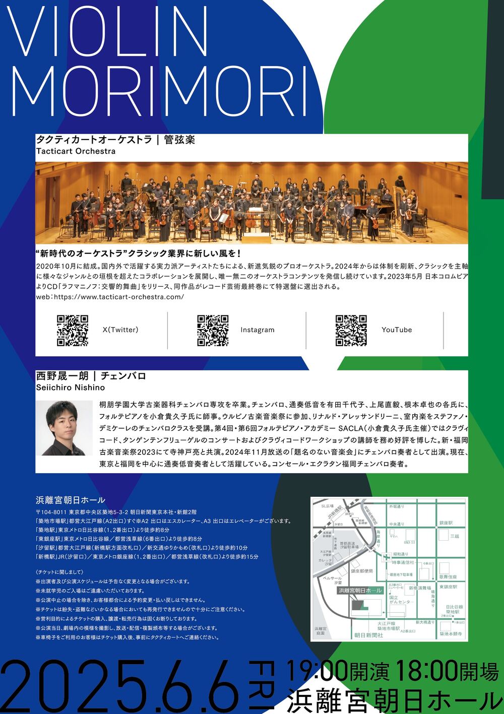 タクティカートオーケストラ、リダ・チェン・アルゲリッチ(指揮)、高松亜衣(ヴァイオリン)、島谷美賀子(ヴァイオリン)、廣田稜司(ヴァイオリン)、西野晟一朗(チェンバロ) 他