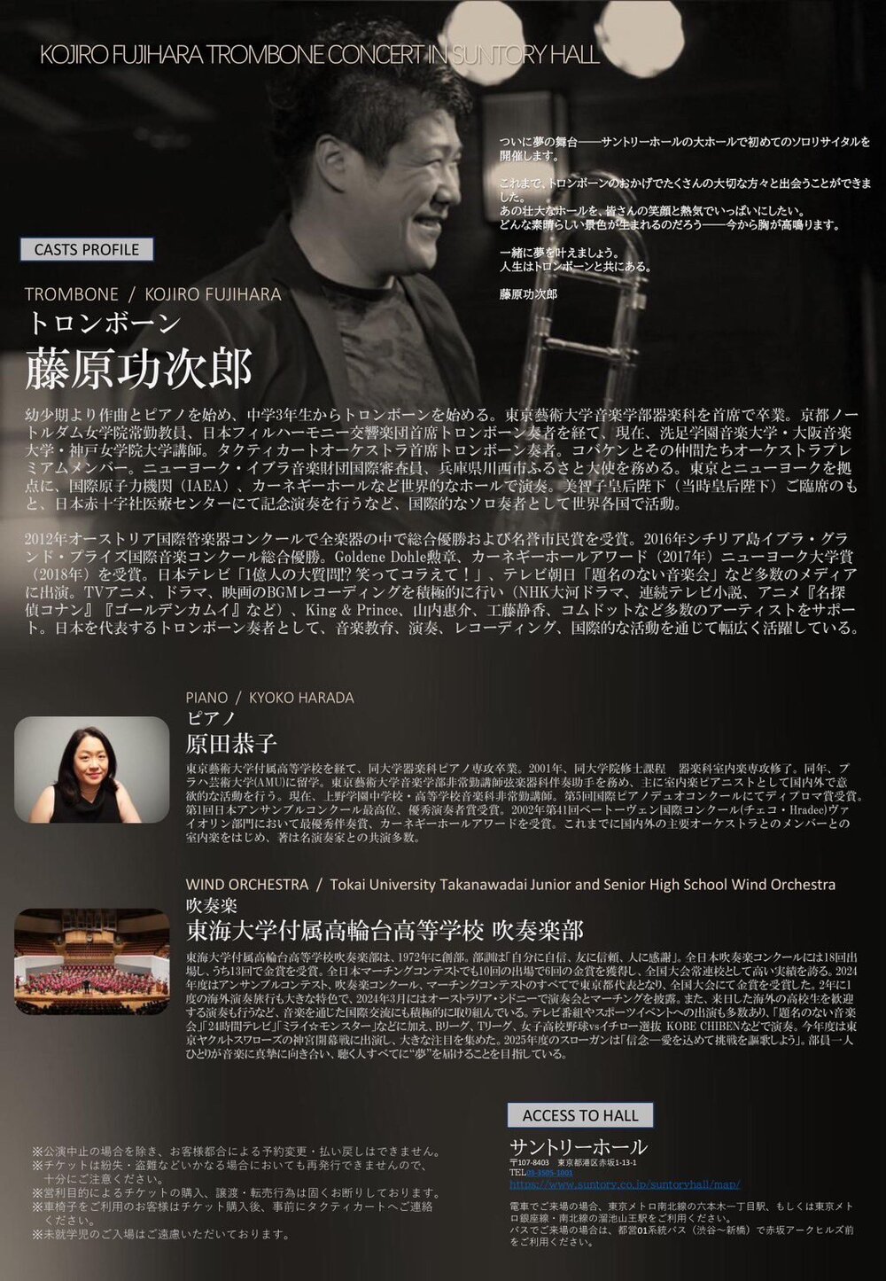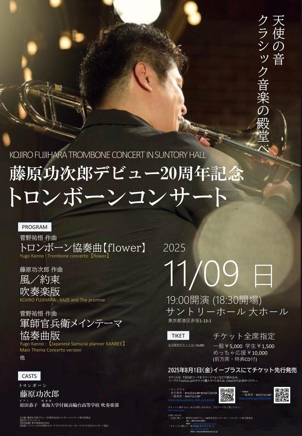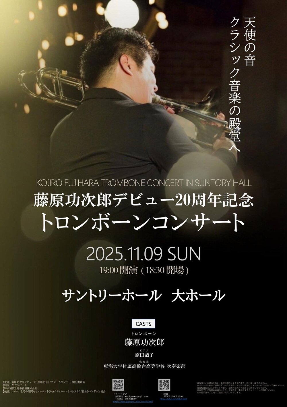 トロンボーン奏者・藤原功次郎の暖かく豊かな音色を、サントリーホールの芳醇な響きと共に味わう。