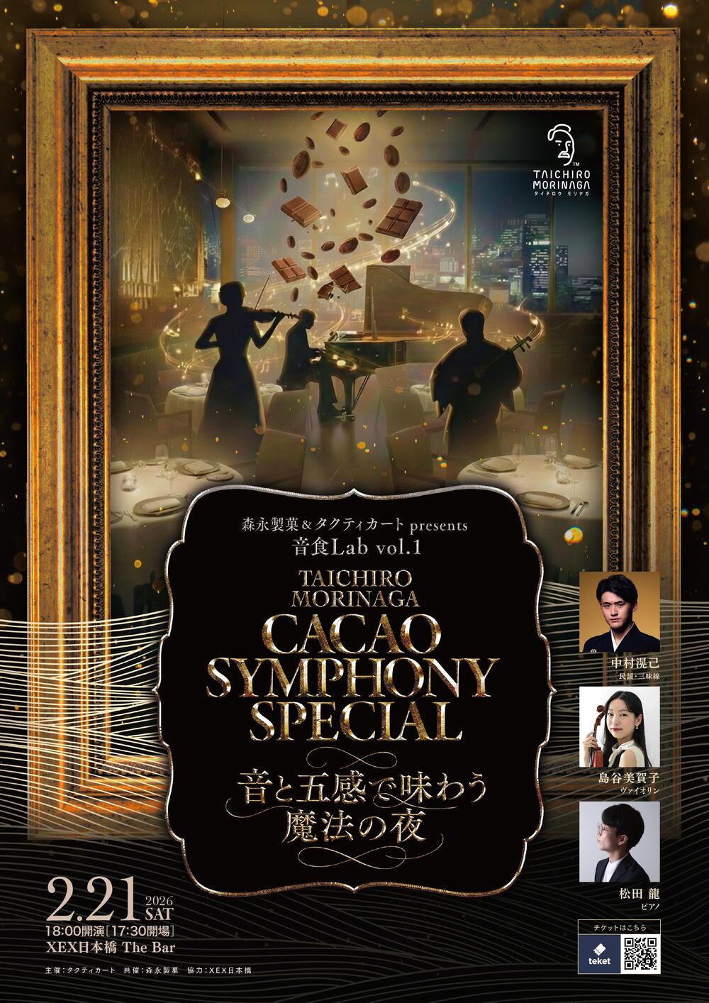 五感に響く新感覚ダイニング企画「音食Lab vol1」を2026年2月21日(土)にXEX日本橋で開催。森永製菓監修一夜限りのスペシャルディナープレートと生演奏のペアリングを楽しむ特別な体験を。