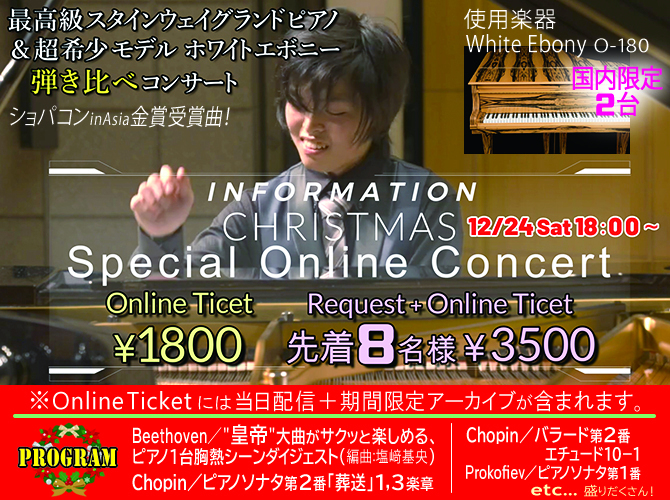 使用楽器:STEINWAY GP、クラウンジュエル スペシャル リミテッドエディション「ホワイトエボニー」(国内限定2台モデル)