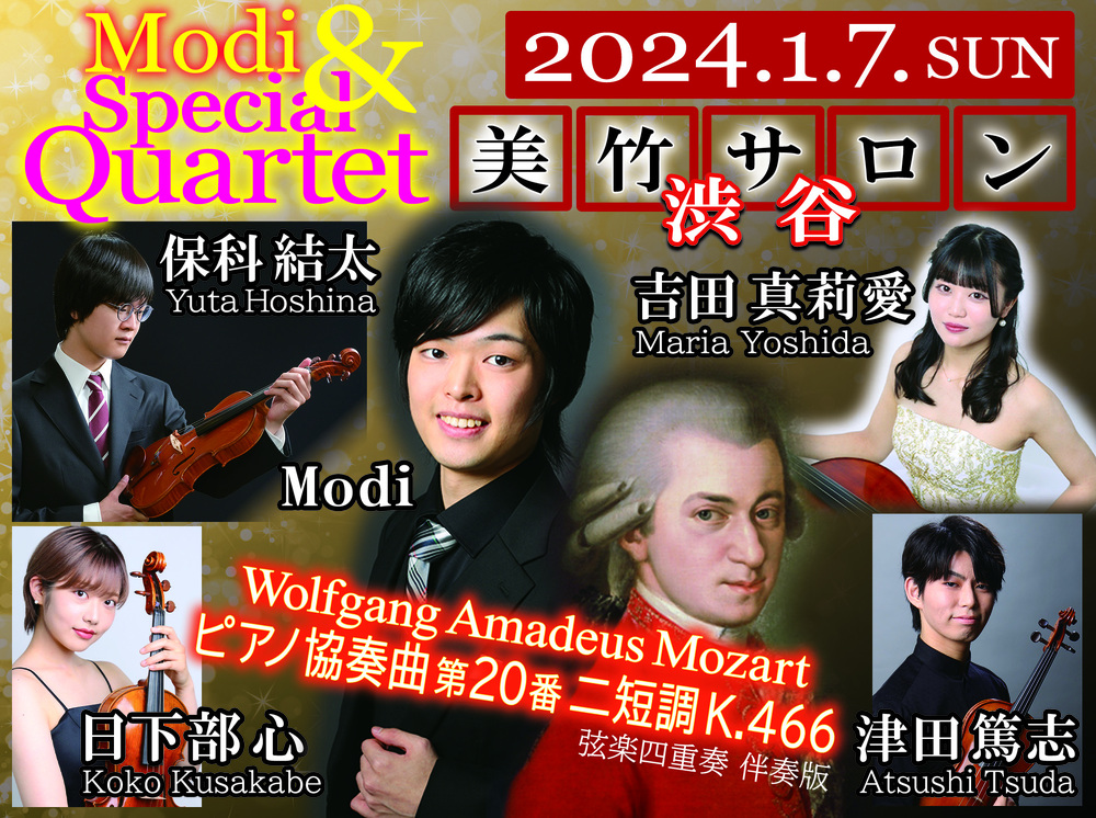 同じく東京音楽大学 特別特待生のヴァイオリニスト保科結太(Yuta Hoshina)率いる若手トップクラスの実力派カルテットと共に、モーツァルトの傑作「ピアノ協奏曲 第20番」に挑む!
