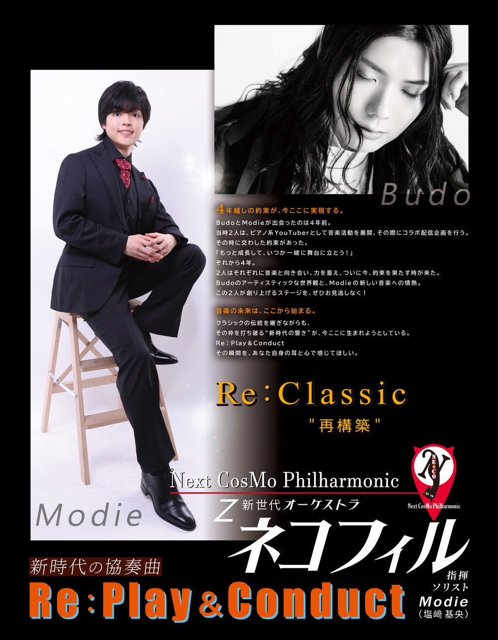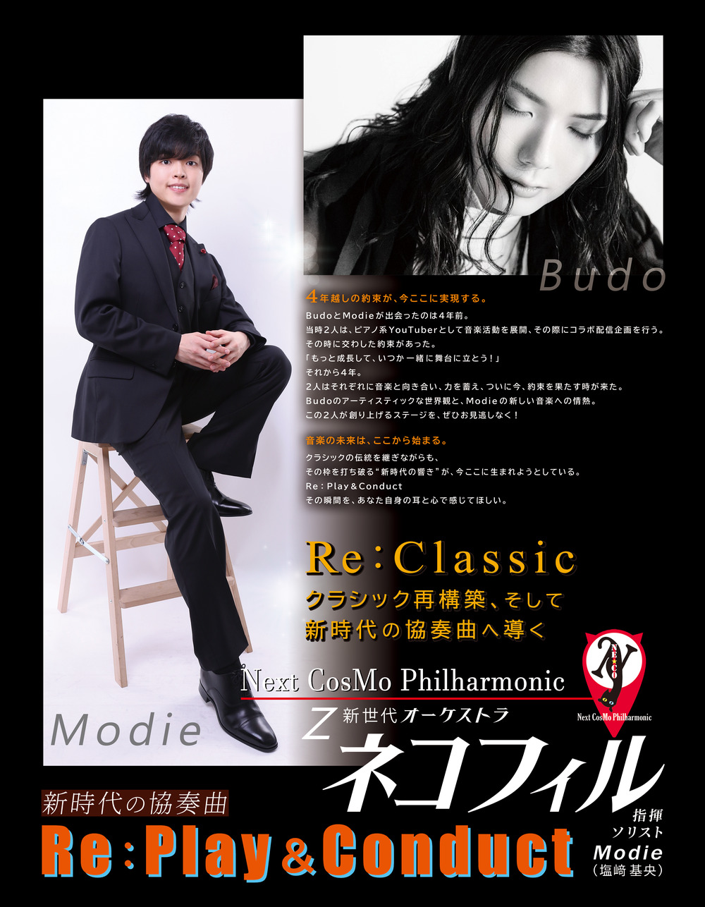 ソリストは、国内外のピアノコンクールで多数の優勝・入賞歴を持つピアニスト Modie(塩﨑 基央)と、独自の感性と魅力的な演奏で注目を集めるピアニスト Budo。