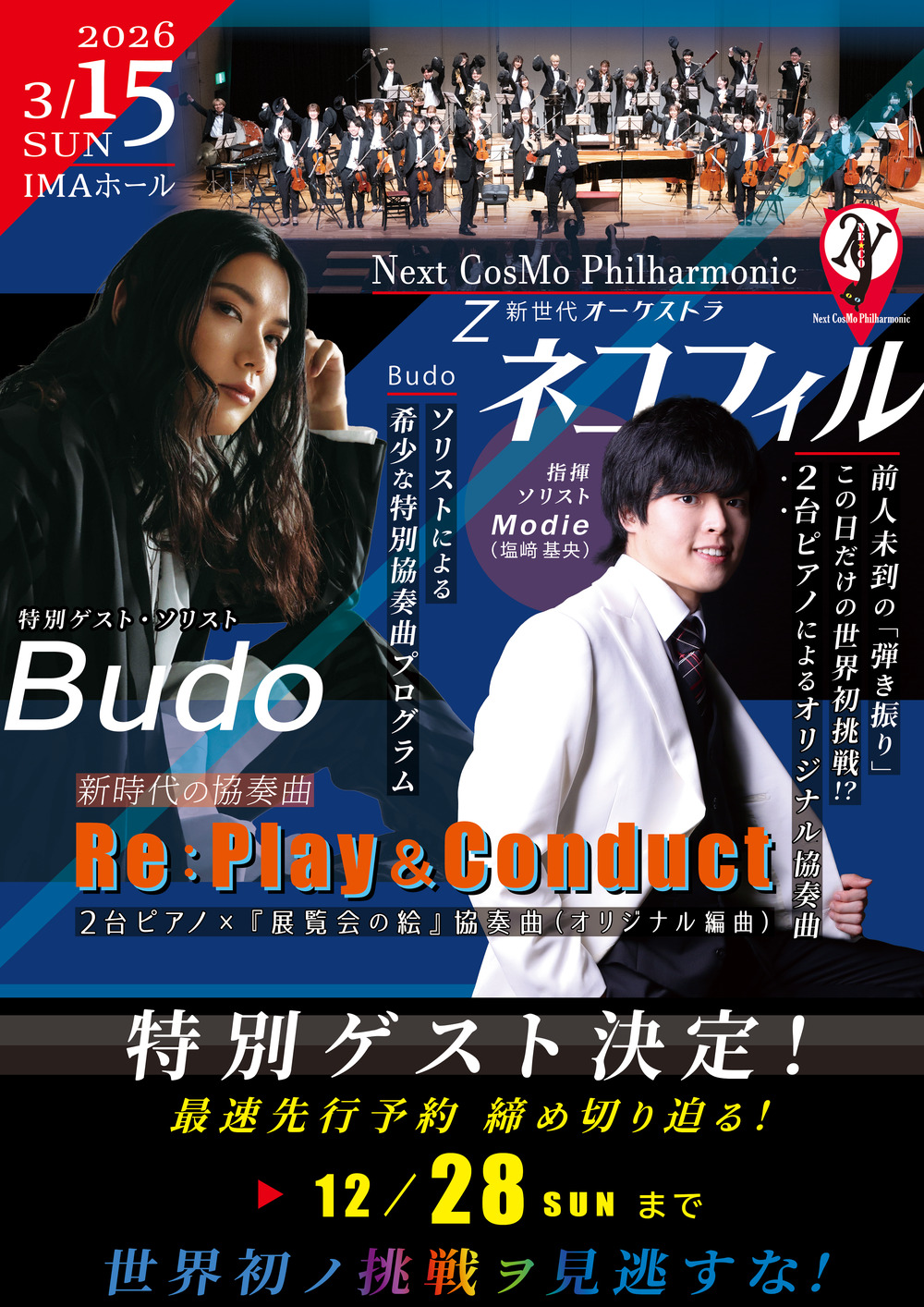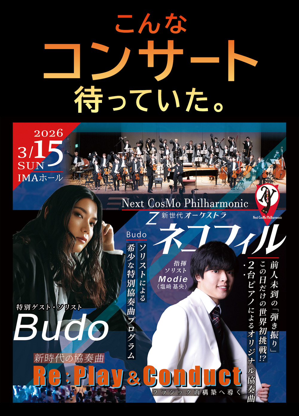 共演を果たすのは、Z世代のトップ奏者たちが集うオーケストラ Next CosMo Philharmonic(通称:ネコフィル)。