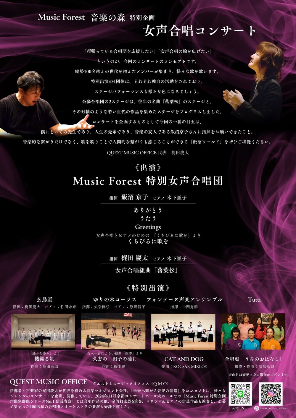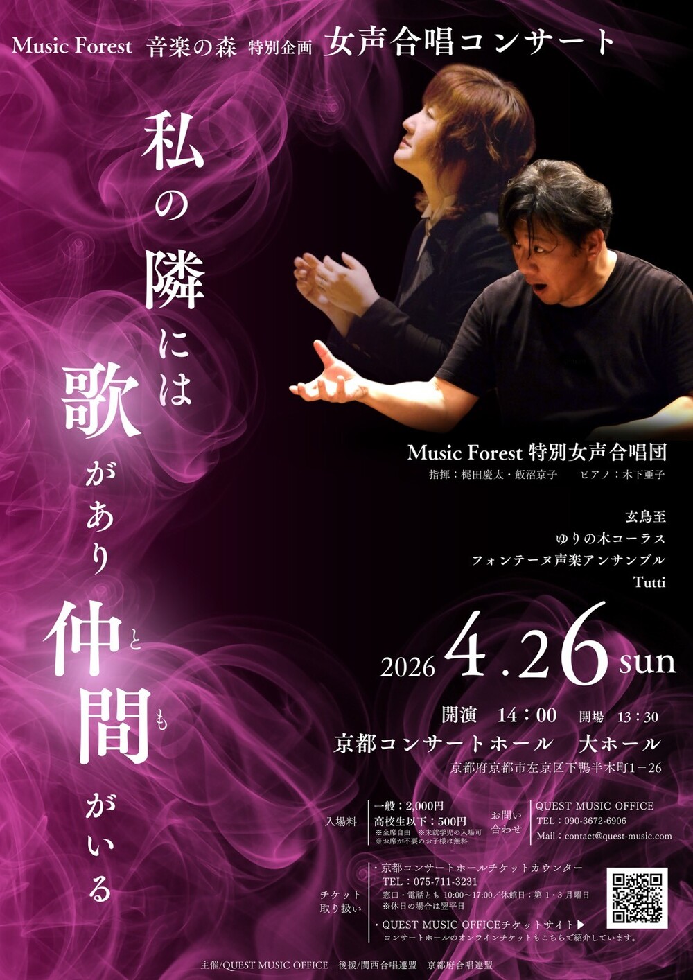 コンサートを企画するものとして今回の一番の目玉は、僕にとっての先生であり、人生の先輩であり、音楽の友人である飯沼京子さんに指揮をお願いできたこと。音楽的繋がりだけでなく、歌を歌うことで人間的な繋がりも感じることができる「飯沼ワールド」をぜひご堪能ください。