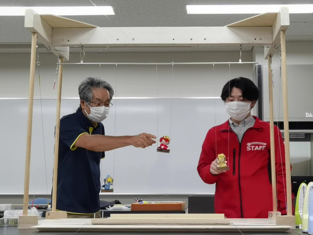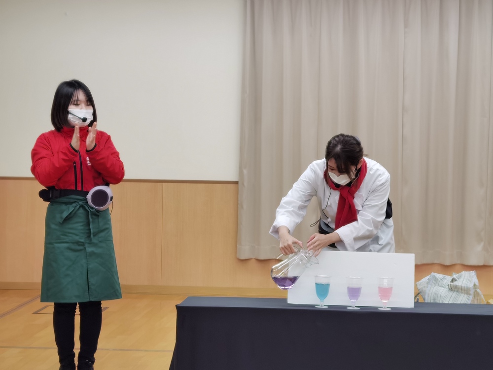 サイエンスショー/1、2回目「サイエンスカフェをオープンさせよう」…カフェにまつわるもののショー!科学の力であらゆるものが変化する! 3、4回目「ゆれるゆれる振り子の不思議」…ブランコなどのゆれるものを使ったショー!手が触れていないのにあらゆるものが動いていく、そろっていく!