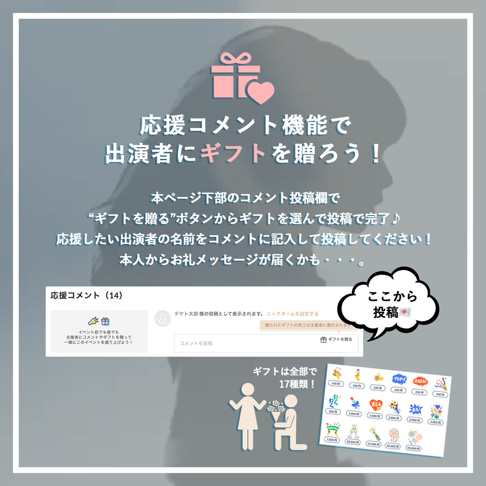 【応援コメント機能で出演者にギフトを贈ろう!】