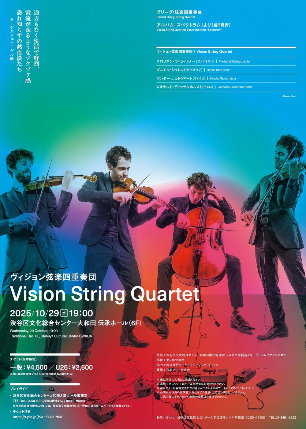 クラシックのレパートリーとオリジナルのレパートリー(フォーク、ポップス、ロック、ファンクetc.)を融合させた多彩なプログラムが魅力のヴィジョン弦楽四重奏団。2012年の結成から音楽界に新風を巻き起こし続ける彼らの初の渋谷LIVE!!暗譜&立奏(チェロ以外)による自由でポップな演奏をお楽しみください!!!