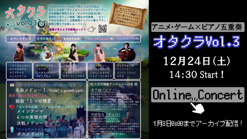 4次元機動アンサンブルオリジナルアレンジでアニメ・ゲーム音楽を中心にお楽しみいただけます。