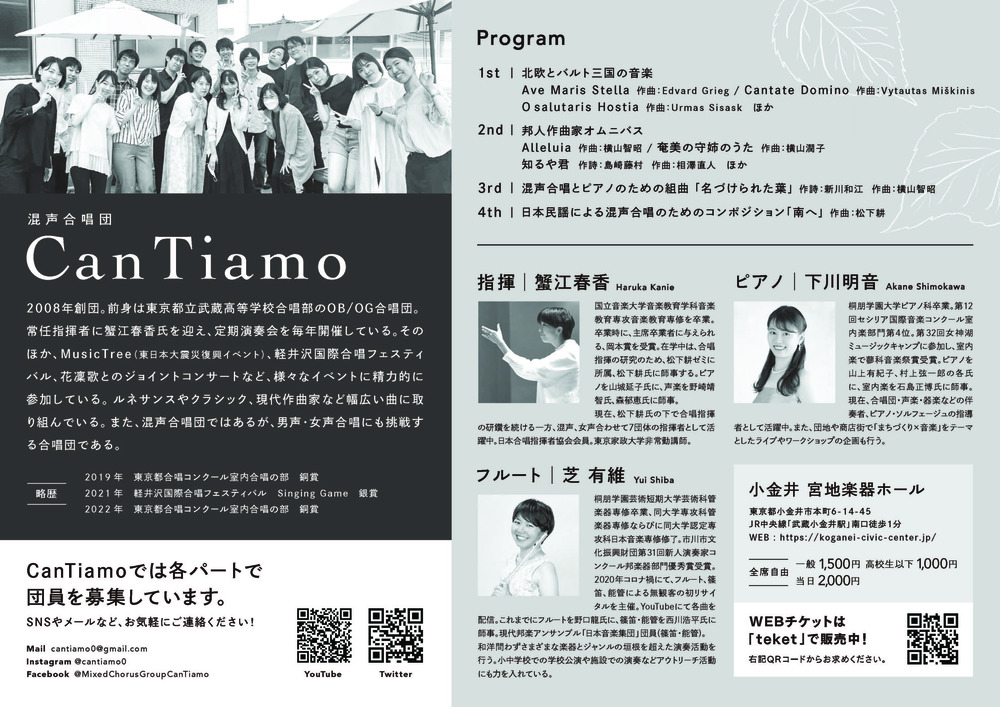 その他のお問い合わせ先:mail:cantiamo0@gmail.com