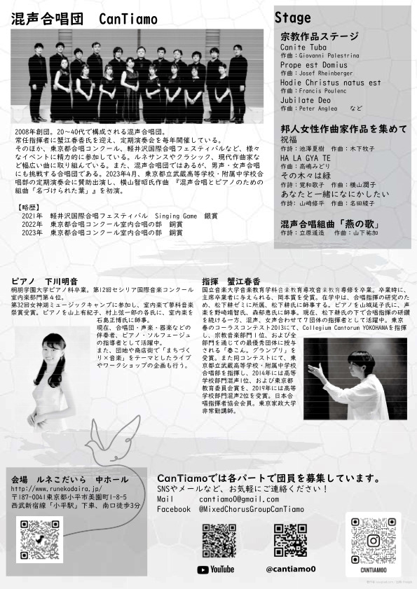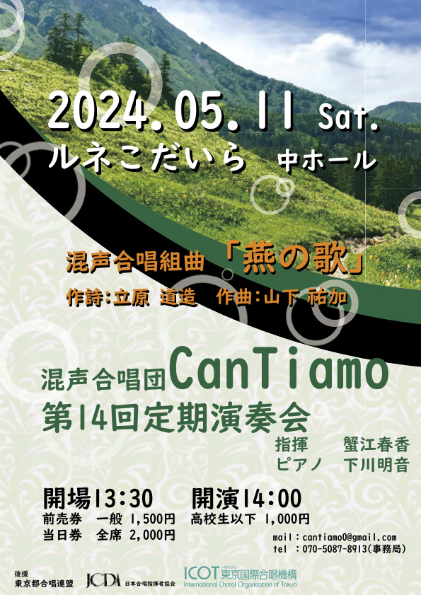 その他のお問い合わせ先:mail:cantiamo0@gmail.com