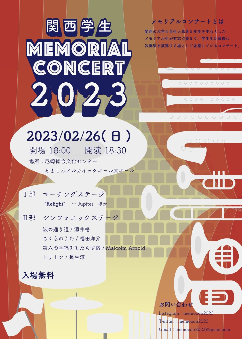 関西の大学4年生にあたる代の人たちが有志で集まり、学生生活最後のステージとして企画している吹奏楽コンサート!