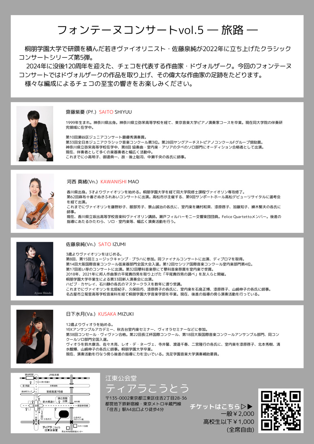 桐朋学園大学で研鑽を積んだ若きヴァイオリニスト・佐藤泉純が2022年に立ち上げたクラシックコンサートシリーズ第5弾。