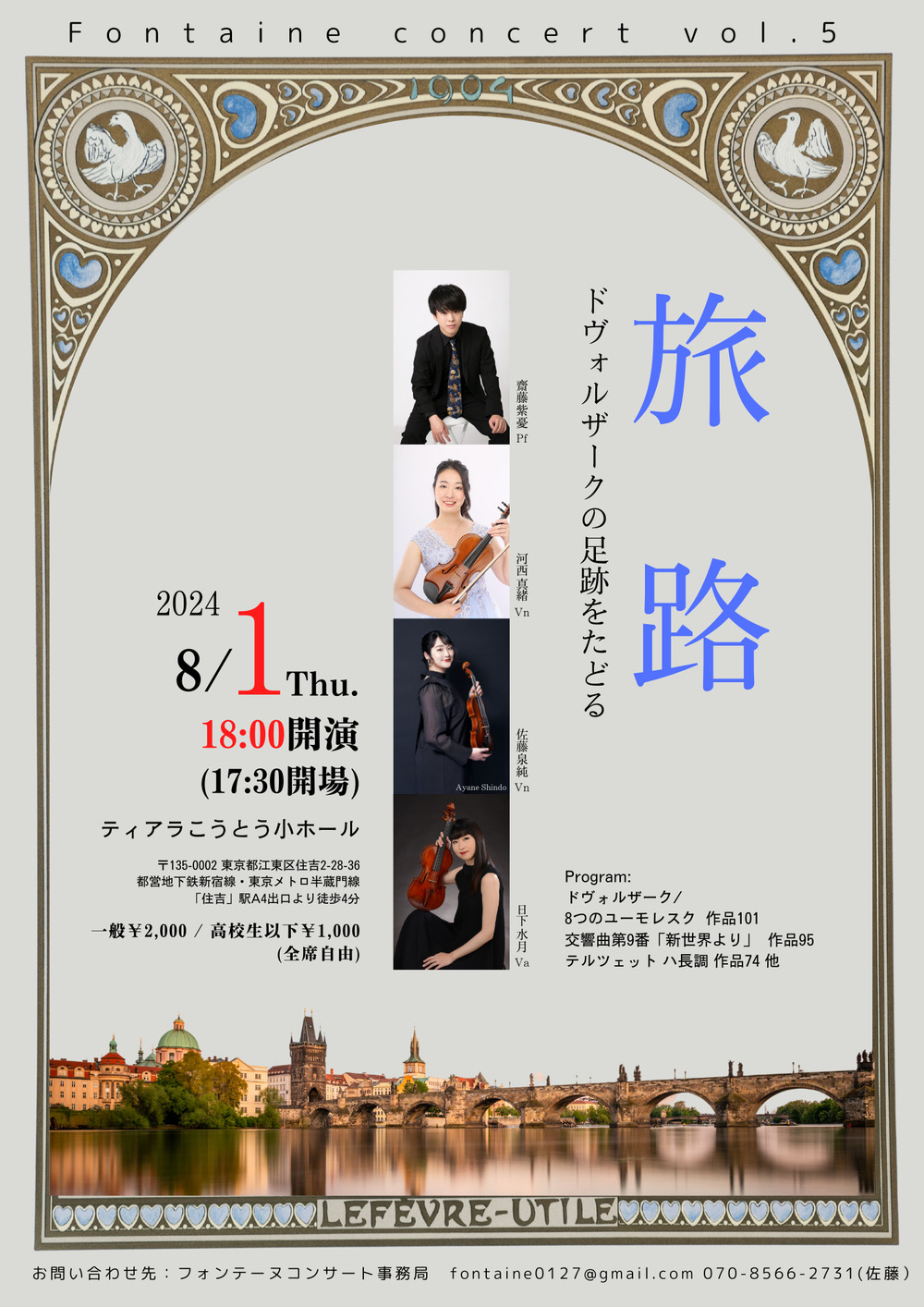 その他のお問い合わせ先:お問い合わせ先:フォンテーヌコンサート事務局 fontaine0127@gmail.com 070-8566-2731(佐藤)