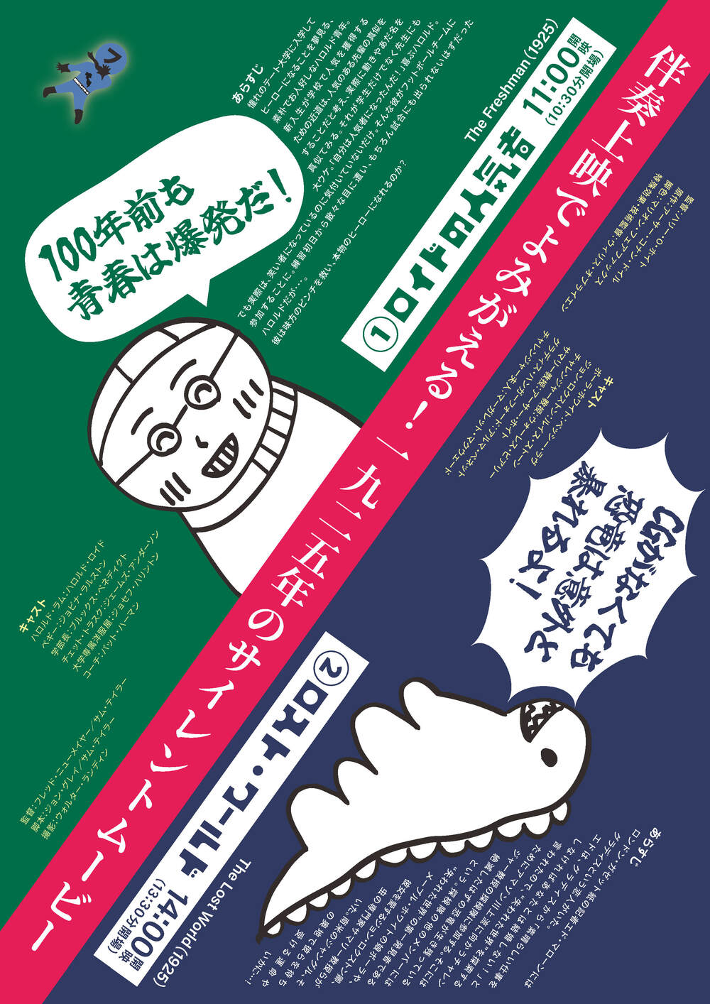 ちょうど100年前に公開され、西宮にあった映画館「敷島劇場」にも多くの人が詰めかけたに違いないサイレントムービーの傑作2本を、楽士による伴奏スタイルで上映。