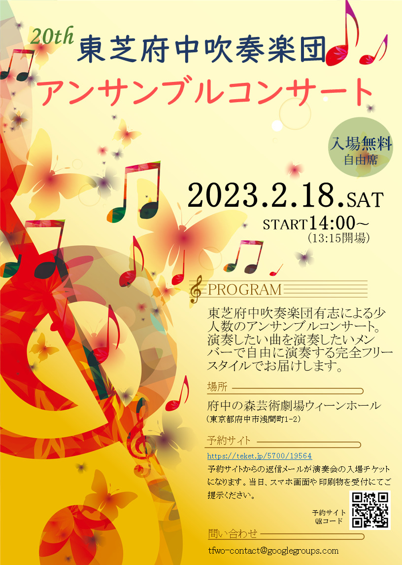 東芝府中吹奏楽団有志による少人数のアンサンブルコンサート。
