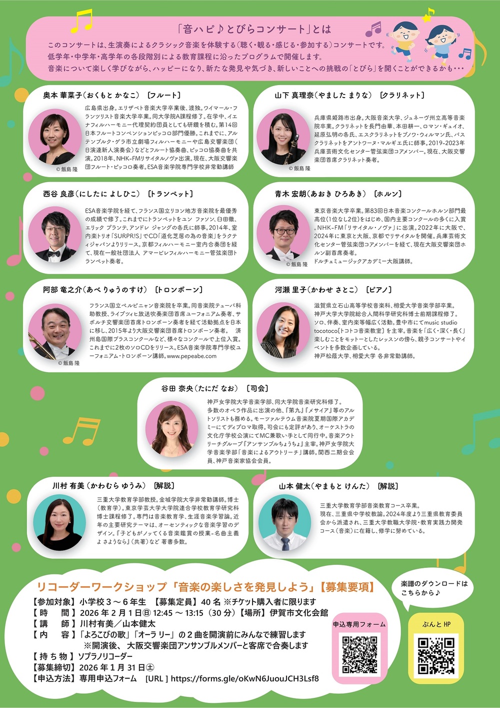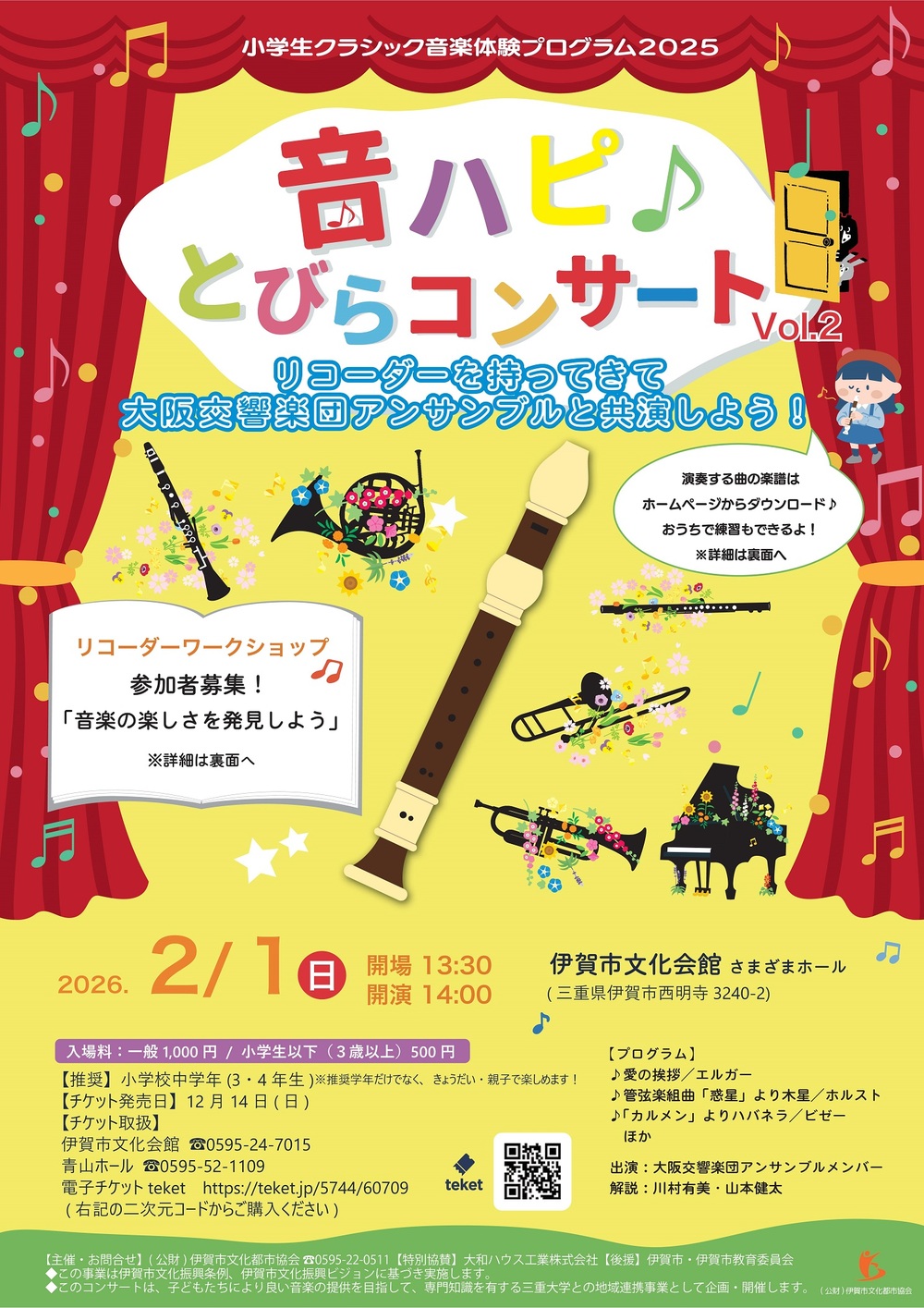 低・中・高学年の各段階別による教育課程に沿ったコンサートプログラム。三重大学との地域連携事業として企画・開催。