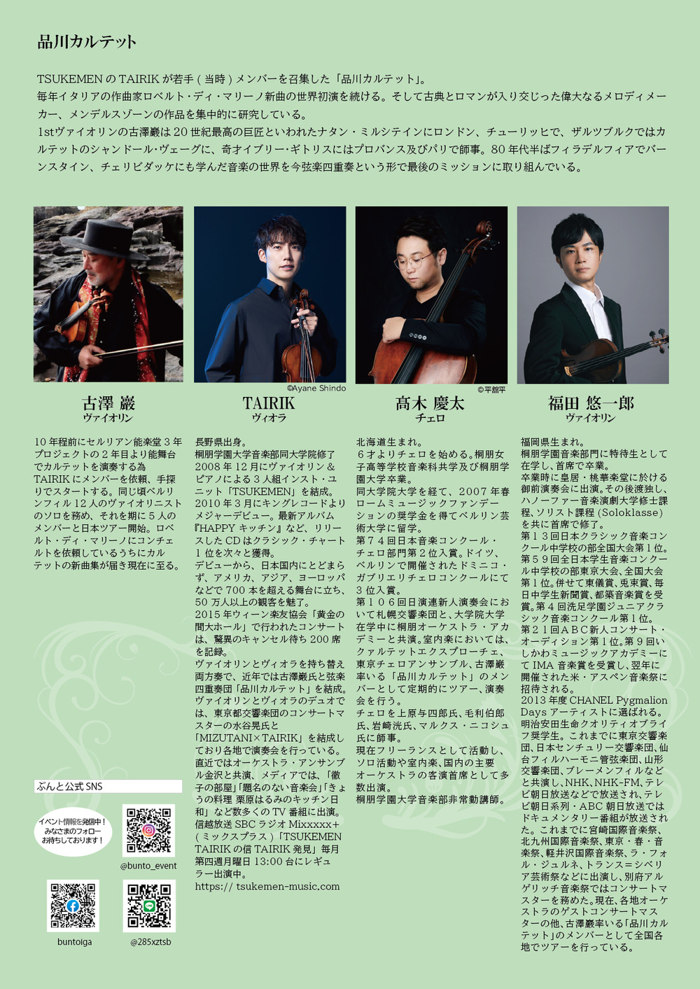 品川カルテット(古澤巖・TAIRIK・高木慶太・福田悠一郎)