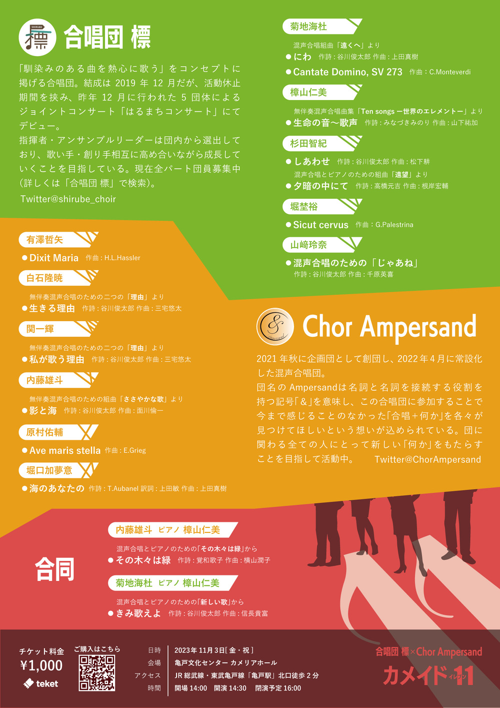 その他のお問い合わせ先:Mail:chorampersand@gmail.com