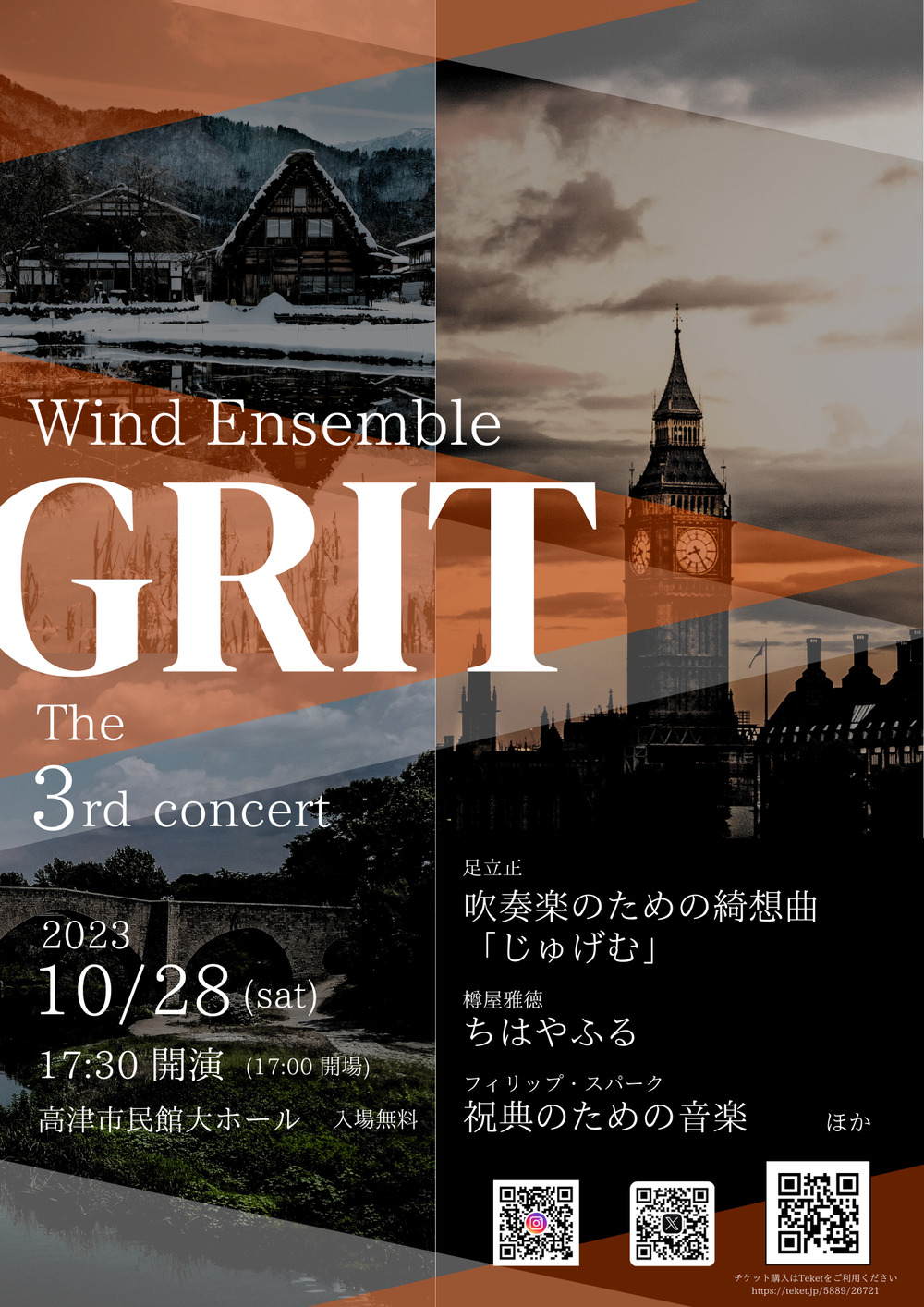 その他のお問い合わせ先:wegrit.concert@gmail.com(Wind Ensemble GRIT 演奏会担当)