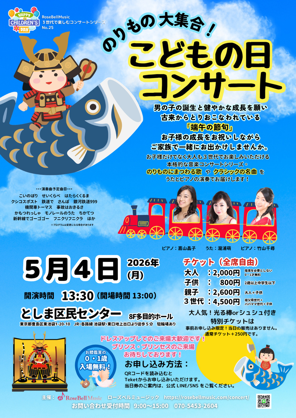 「こどもの日コンサート」は男の子のリクエストを多く取り入れました。内容は老若男女みなさまお楽しみいただけますので、プリンス・プリンセス・キング・クイーンの全ての世代の皆様のご来場を、こころよりお待ちしております!
