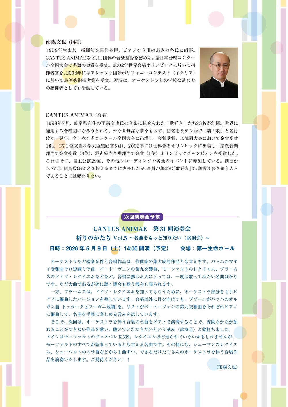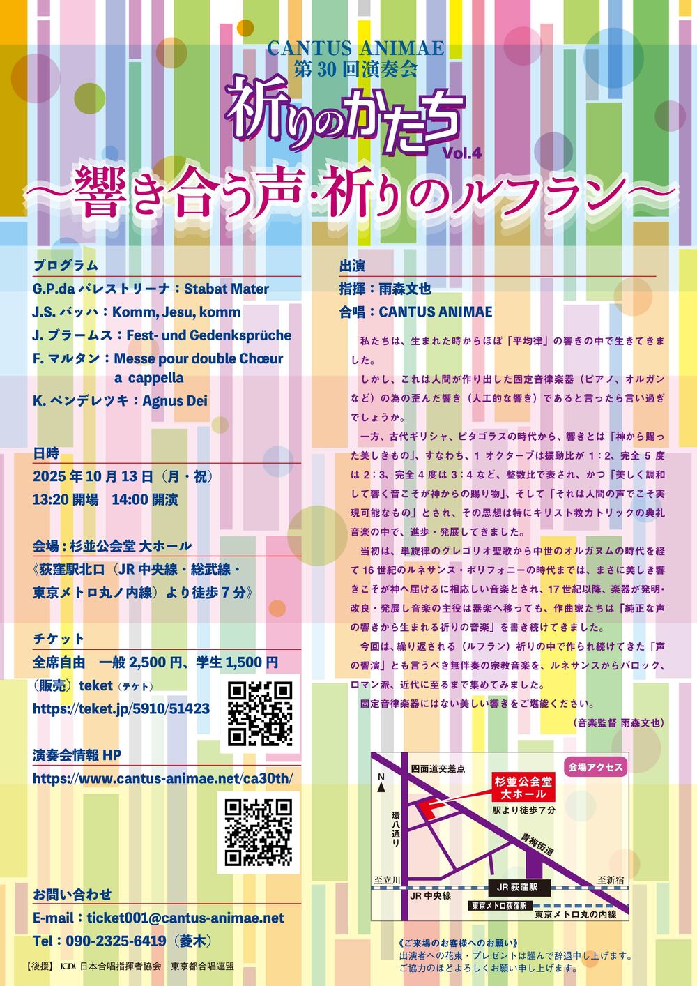 当初は、単旋律のグレゴリオ聖歌から中世のオルガヌムの時代を経て16世紀のルネサンス・ポリフォニーの時代までは、まさに美しき響きこそが神へ届けるに相応しい音楽とされ、17世紀以降、楽器が発明・改良・発展し音楽の主役は器楽へ移っても、作曲家たちは「純正な声の響きから生まれる祈りの音楽」を書き続けてきました。