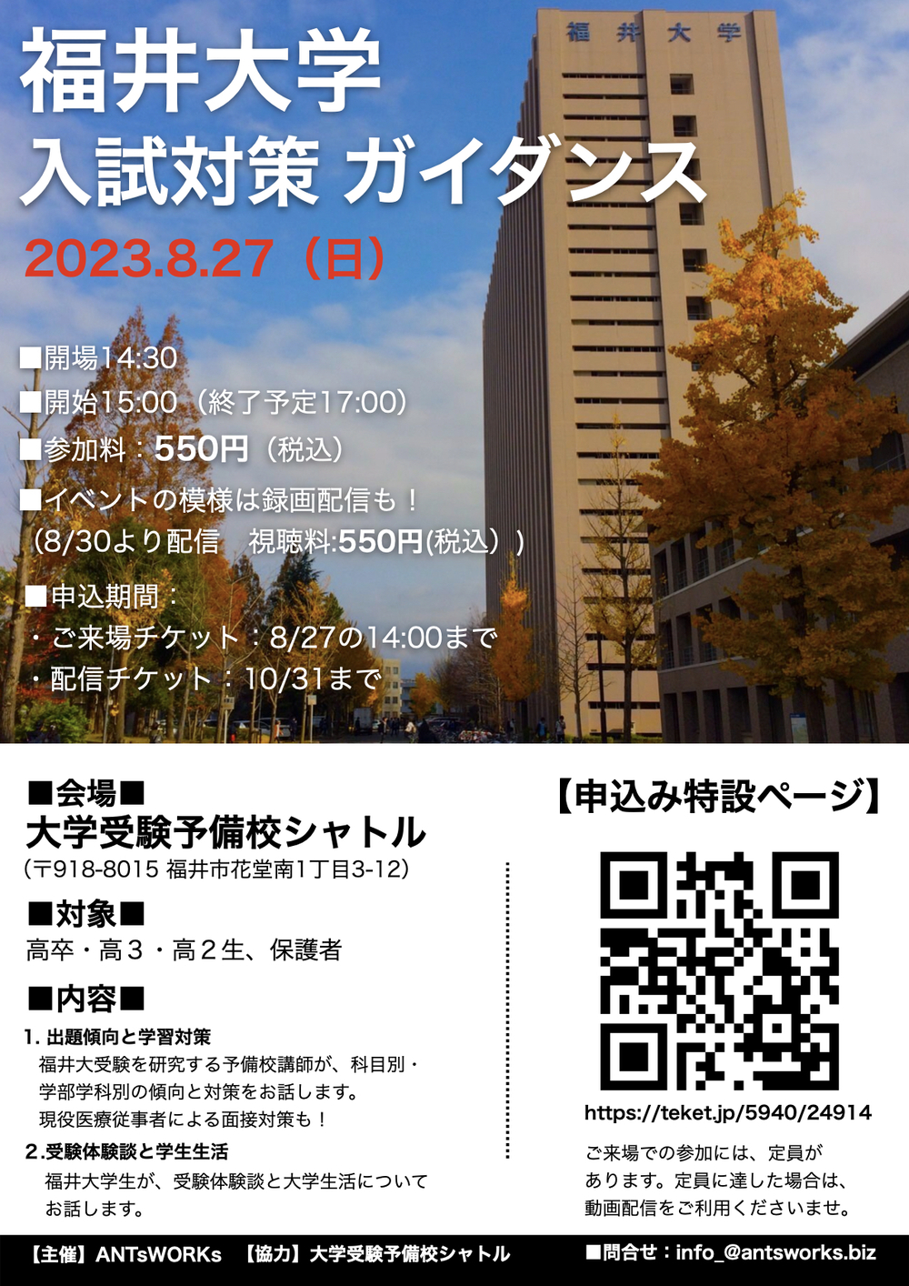 ・参加者の皆さま(配信含む)には、大学受験予備校シャトル・ANTsWORKs提供のサービス優待