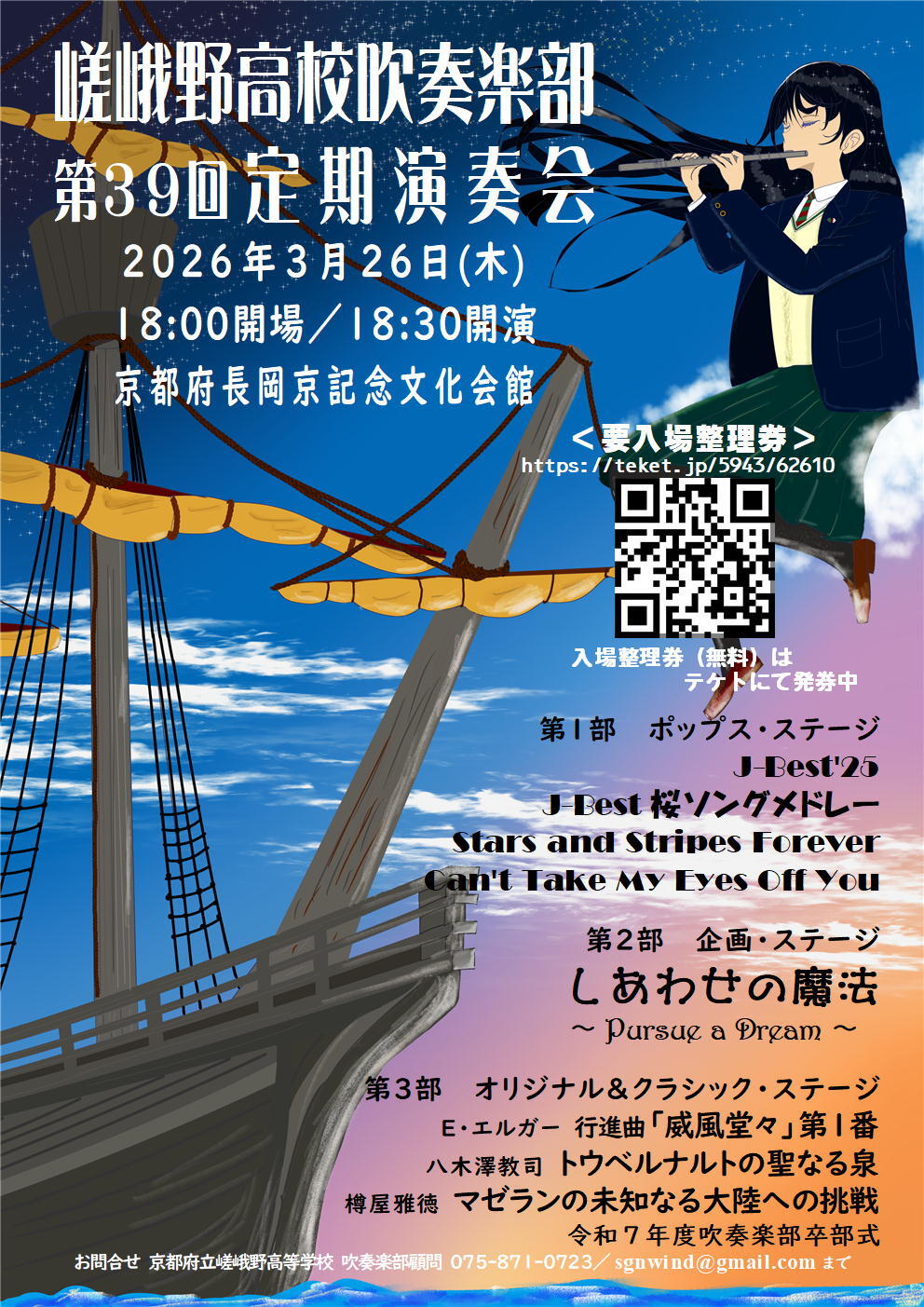 その他のお問い合わせ先:京都府立嵯峨野高等学校 吹奏楽部顧問まで