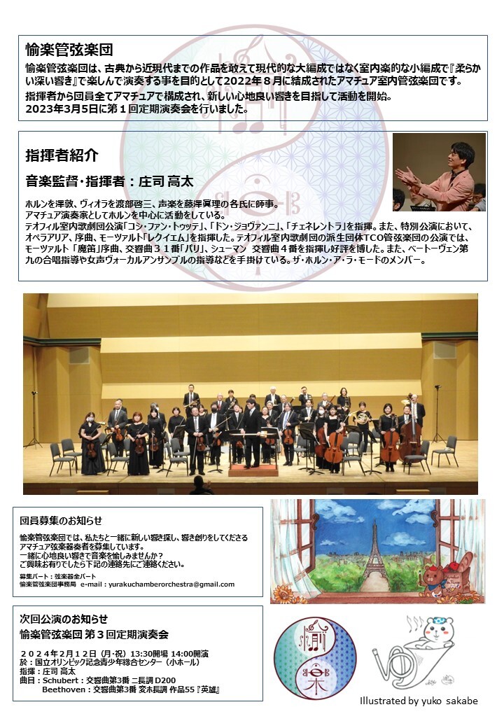 その他のお問い合わせ先:愉楽管弦楽団:yurakuchamberorchestra@gmail.com