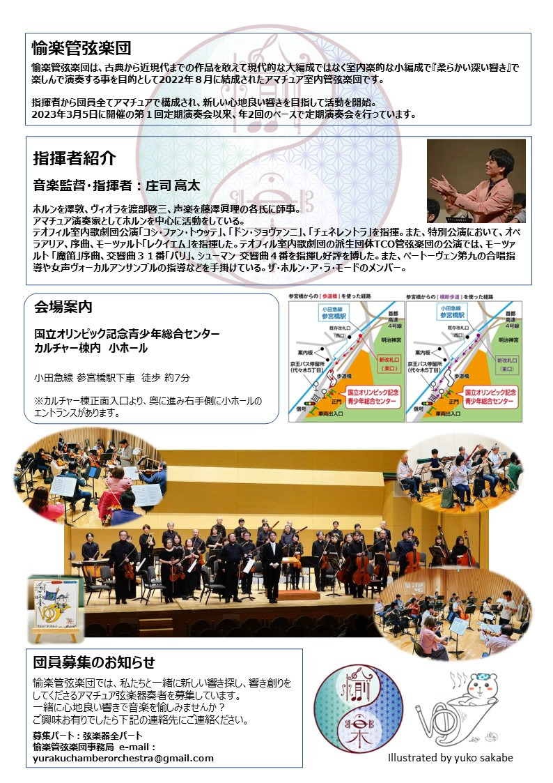 その他のお問い合わせ先:愉楽管弦楽団:yurakuchamberorchestra@gmail.com