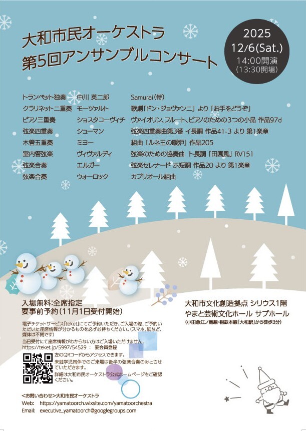 トランペット独奏《Samurai》から、クラリネット二重奏、ピアノ三重奏、弦楽四重奏、木管五重奏、そして室内管弦楽・弦楽合奏まで、ジャンルも時代も越えた名曲が勢ぞろい。