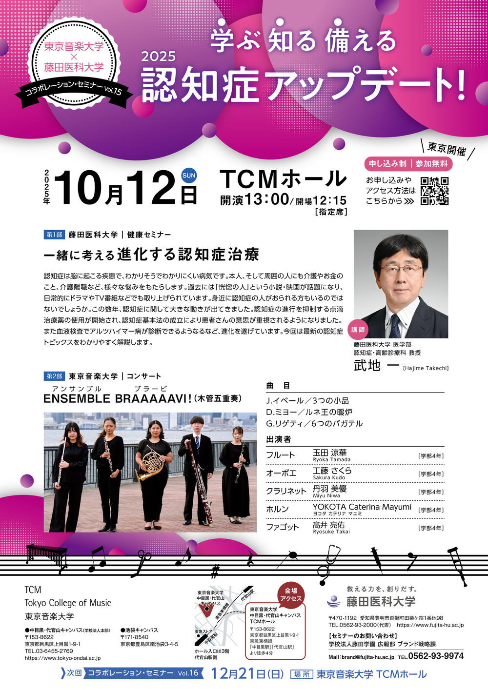 協定を記念したコラボイベントでは毎回さまざまなテーマによる健康や医療のお話と美しい音楽をお届けします。