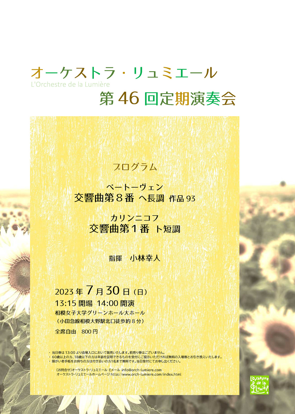 その他のお問い合わせ先:問い合わせメールアドレス:info@orch-lumiere.com