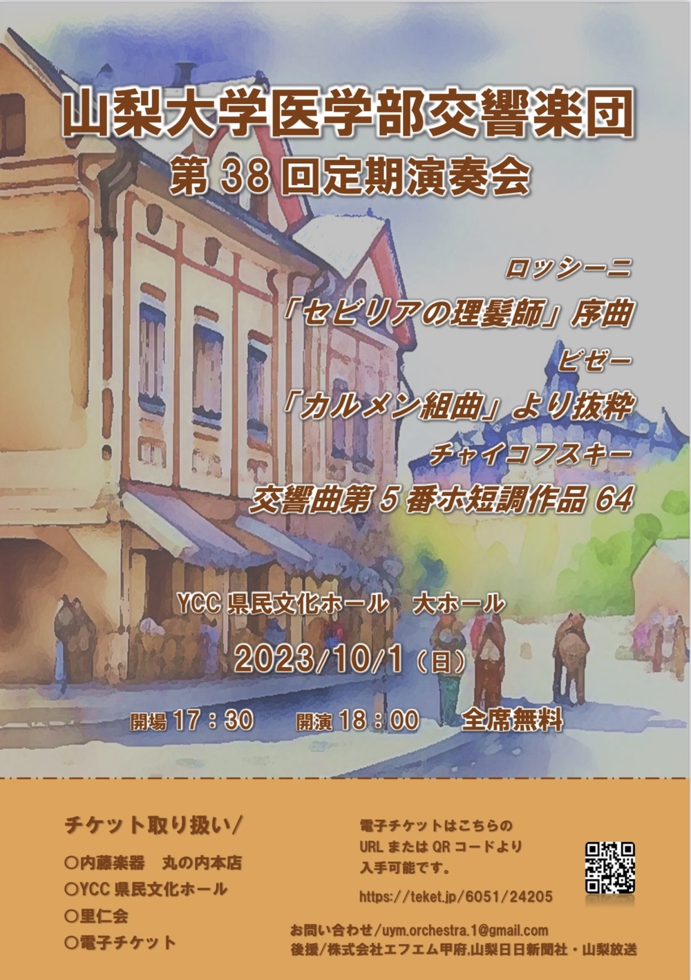 前山梨医科大学が樹立した時にある楽器経験者が言った。「オーケストラをやろう!」 その声で初心者から経験者までが集まって作ったのがこの交響楽団である。 私たち…