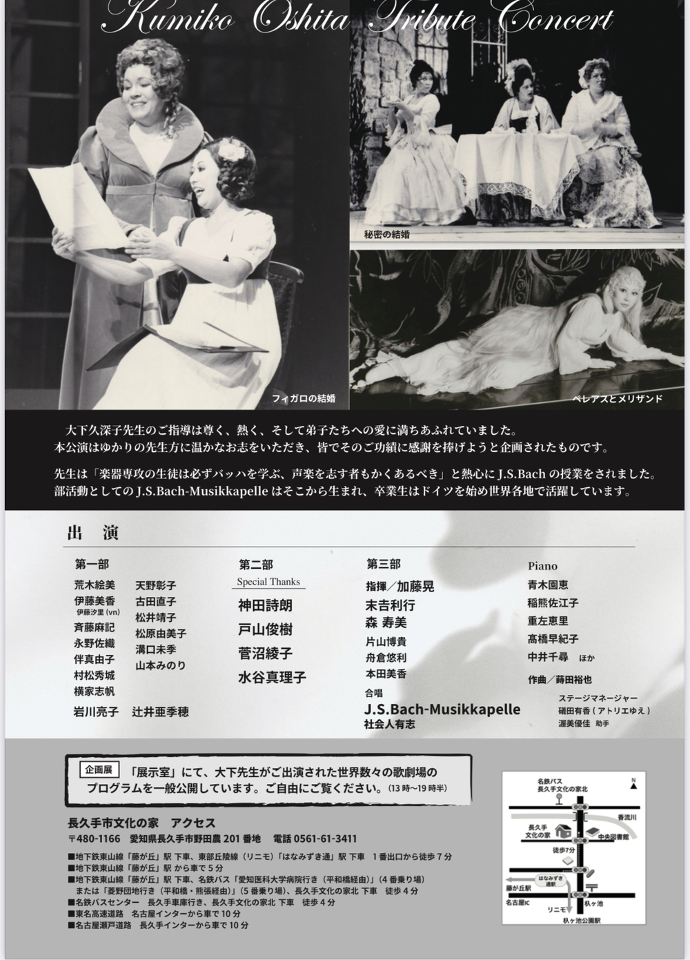 この演奏会は門下生とゆかりの先生方が大下先生を偲び、音楽への情熱を、その教えを歌い継いでいこうと発案されたものです。