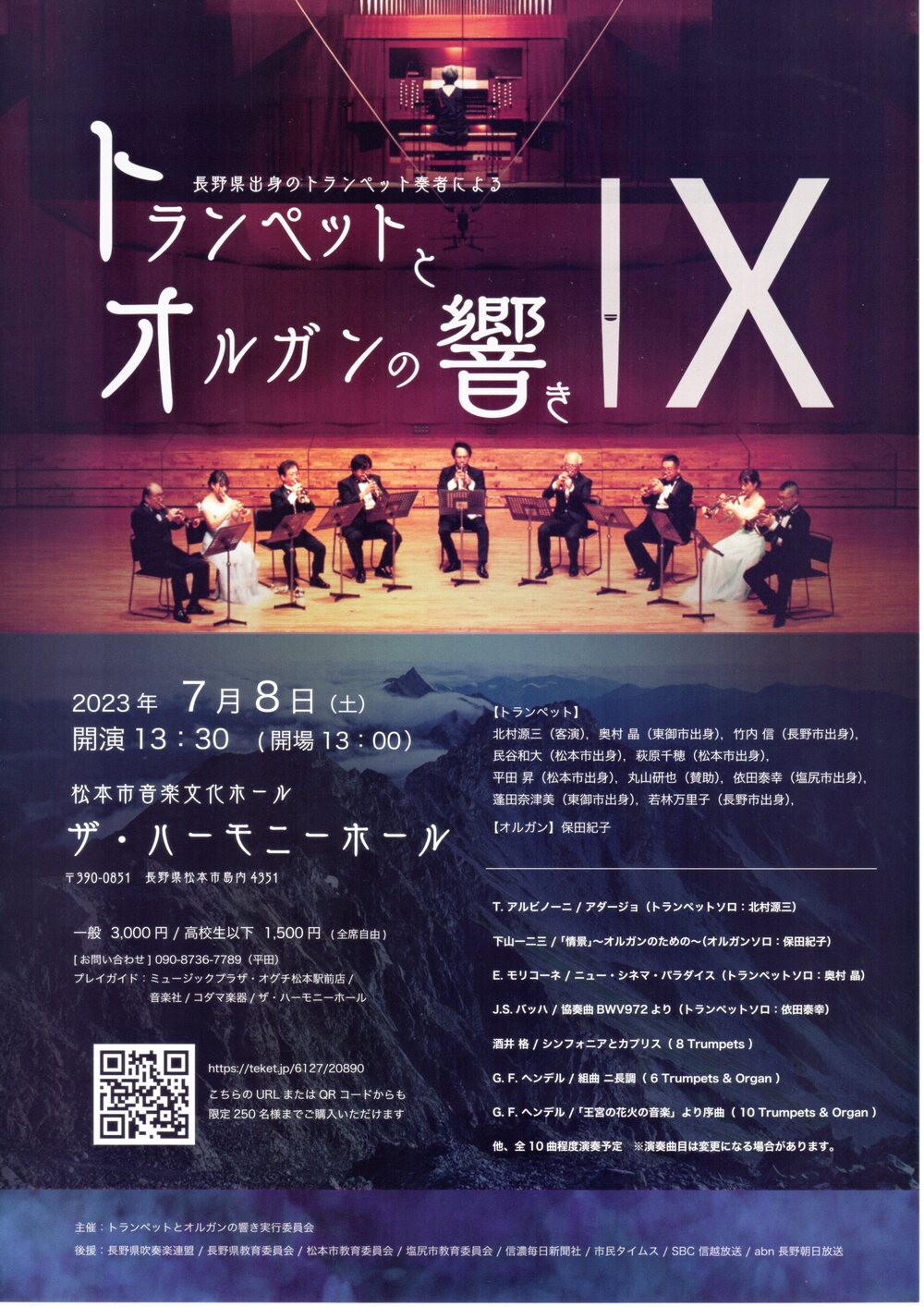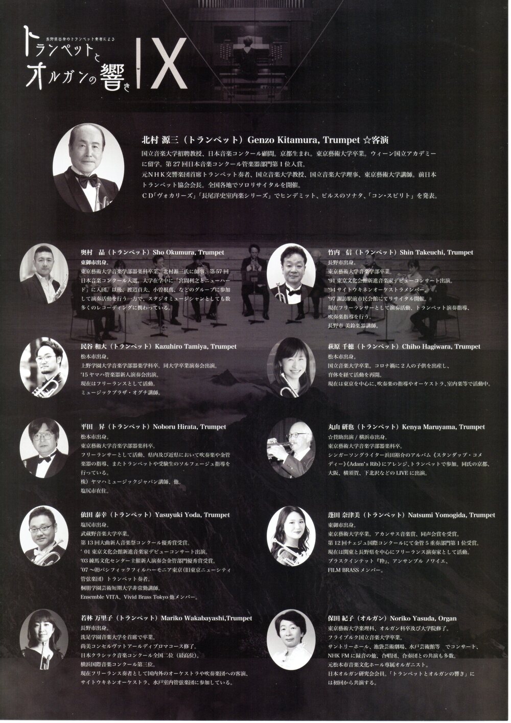 トランペット:北村源三(客演),奥村 晶(東御市出身),竹内 信(長野市出身),民谷和大(松本市出身),萩原千穂(松本市出身),平田 昇(松本市出身),丸山研也(賛助),依田泰幸(塩尻市出身),蓬田奈津美(東御市出身),若林万里子(長野市出身),オルガン:保田紀子