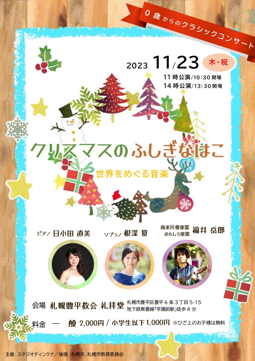 クリスマスがもっと大好きになるコンサートです。