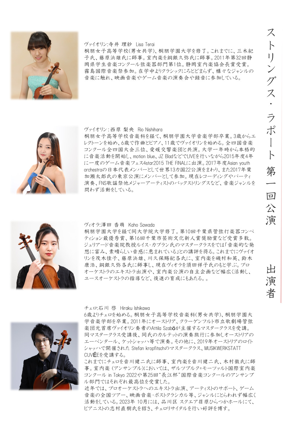 桐朋学園大学同期の4人による弦楽四重奏。