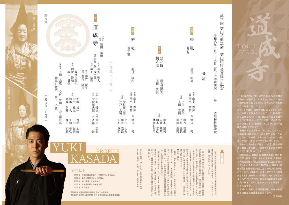 また、観世宗家 観世清和師、嫡男 観世三郎太師にもご出演頂き華を添えて頂きます。