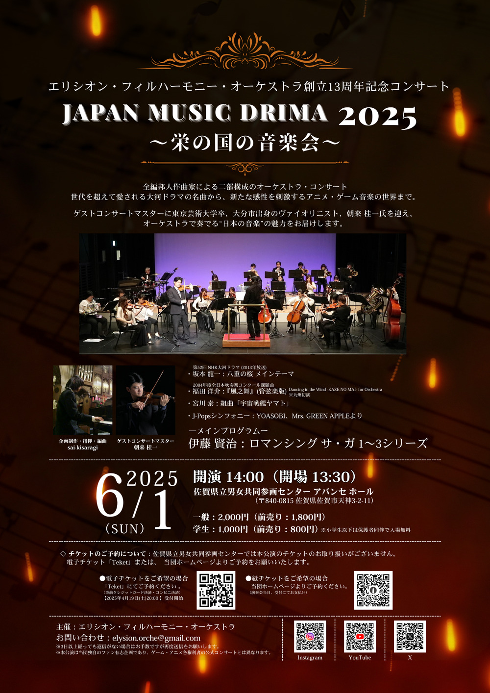 2025年6月1日(日)佐賀県立男女共同参画センター・アバンセ『アバンセホール』にてオーケストラ・コンサートを開催!