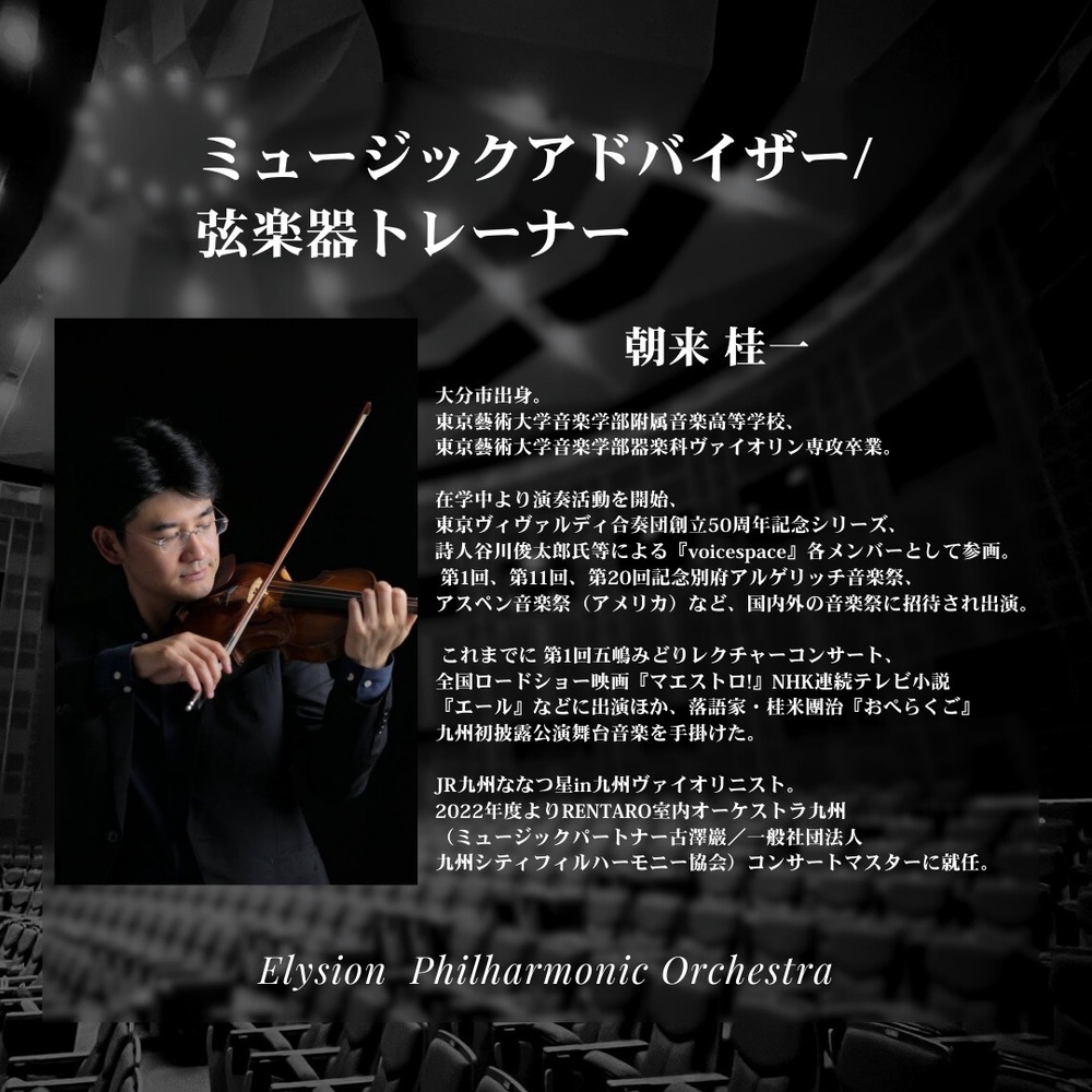 コンサートマスター:朝来 桂一(東京藝術大学卒,大分市出身ヴァイオリニスト)