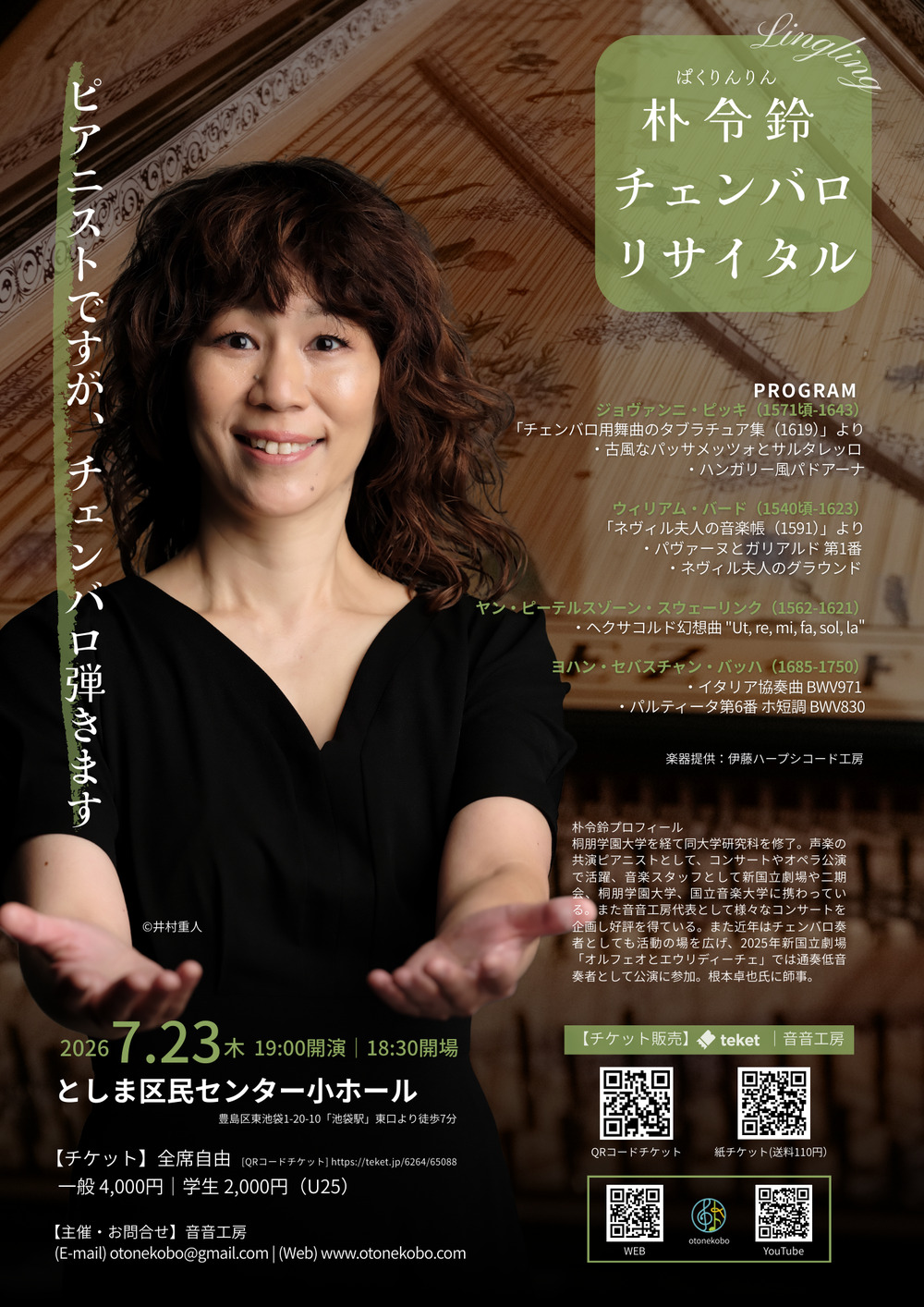 前半はピアノでは演奏されないバロック初期の鍵盤曲、後半はピアニストらしくバッハの名曲をお届けします。